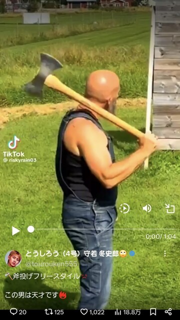 斧投げの達人すごいですね(;・ω・)