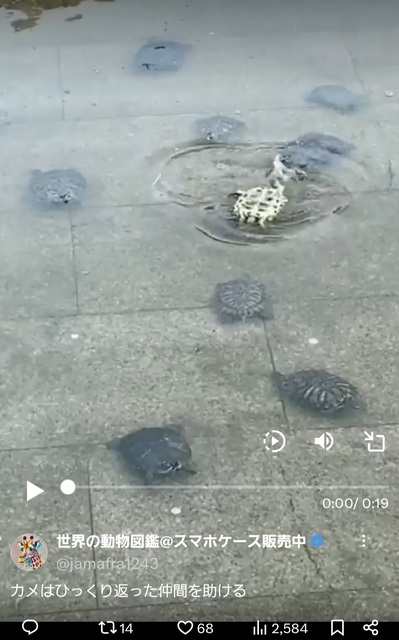 亀はひっくり返った仲間を助けるのですね