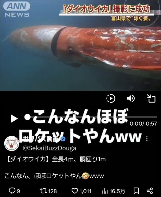 ダイオウイカってこんな色なんですね~